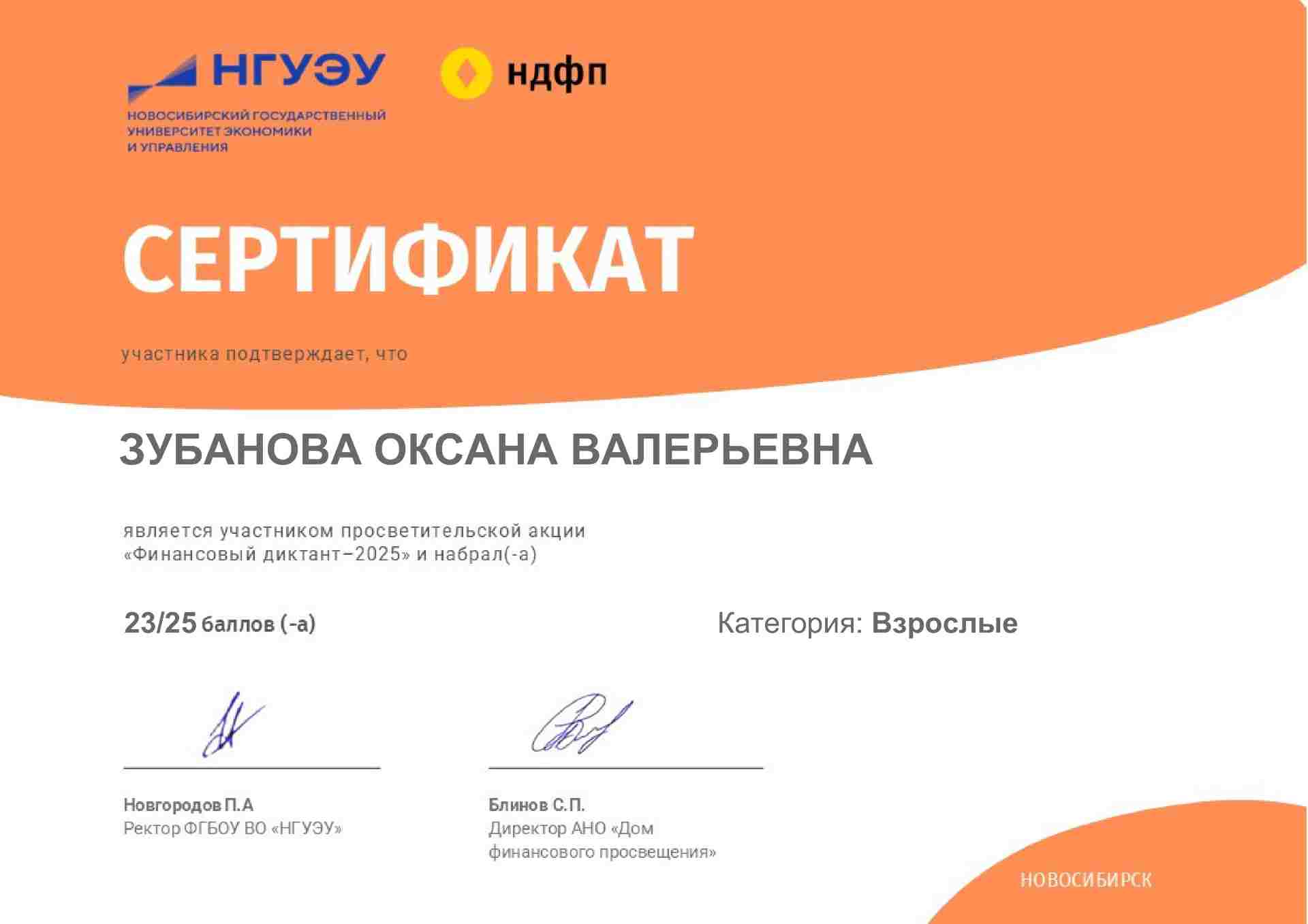 Сертификат участника просветительской акции "Финансовый диктант - 2025"