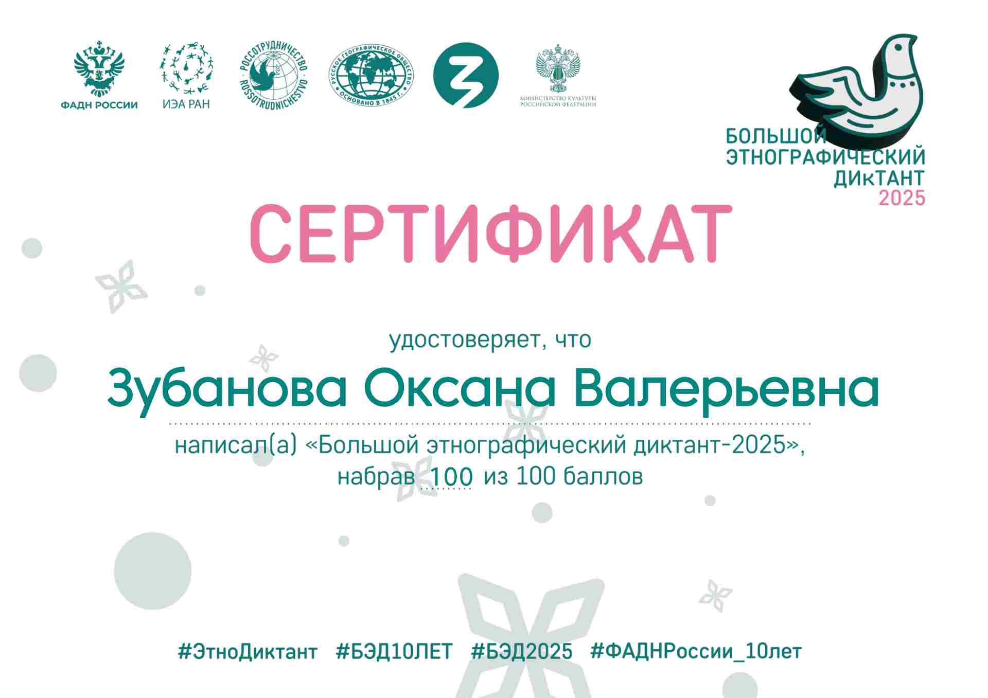 Сертификат "Большой этнографический диктант - 2025"